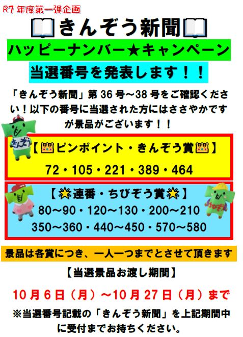 ハッピーナンバーキャンペーン当選番号のお知らせ!