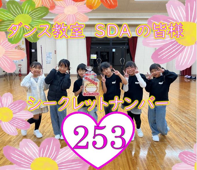 今年度第4号🌟ありがとうキャンペーン当選団体はシークレットナンバー253番「ダンス教室 SDA」の皆様です🌈おめでとうございます!いつもご利用頂きありがとうございます(*^^*)☆彡